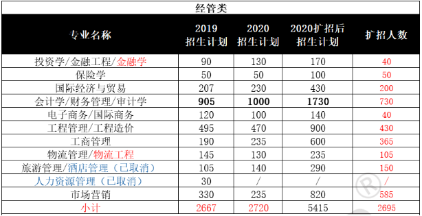 2020年河北专接本经管类扩招专业人数