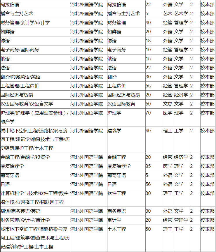 2020年河北外国语学院专接本扩招计划