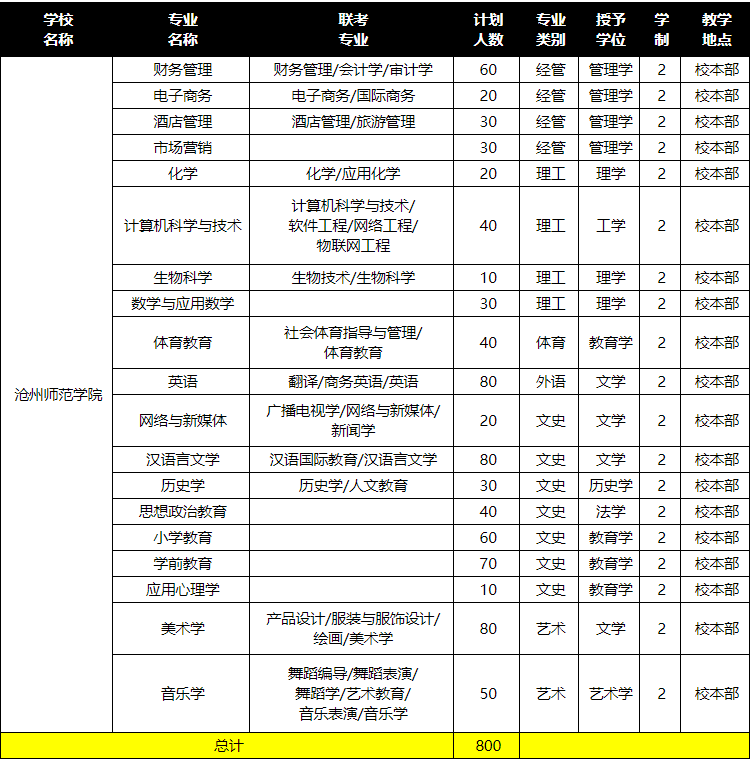 2019年沧州师范学院招生计划人数: