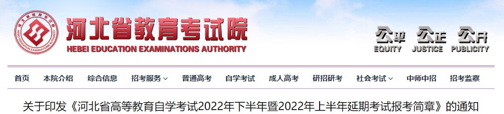 河北省高等教育自学考试2022年下半年暨2022年上半年延期考试报考简章