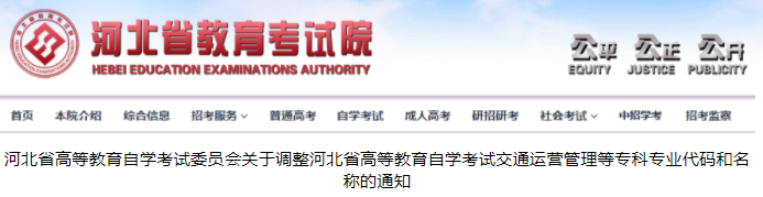 关于调整河北自考交通运营管理等专科专业代码和名称的通知